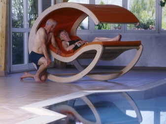 يبدو هذا التصميم أكثر غرابة من السابق. يتم استكمال هذا الكرسي القابل للطي بآلية خاصة. يمكنك تغيير ارتفاعه بضغطة زر واحدة فقط. إنه عملي ومريح. في كثير من الأحيان ، تأتي هذه الطرز أيضًا بظهر قابل للتعديل ، مما يسمح لك بالاسترخاء في الوقت المناسب ، والاستمتاع بدقائق من الراحة الجيدة..