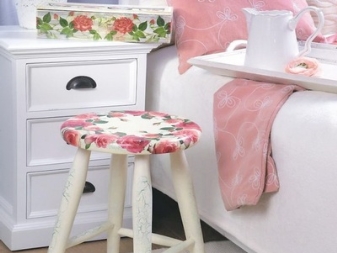 تسمح لك تقنية Decoupage بتخفيف الأجزاء الداخلية بأثاث ذي ألوان زاهية. استخدم خيالك على أكمل وجه ، وستحصل على شيء متعدد الاستخدامات وغير عادي يزين أي غرفة من غرفك ، سواء كان ذلك المطبخ أو غرفة النوم أو الحضانة..