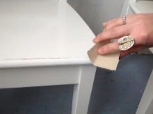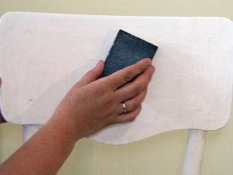 بادئ ذي بدء ، ينصح الخبراء برمل الكرسي. ستعمل عملية إزالة الورنيش القديم هذه على تحضير قاعدة الأثاث. الصنفرة السطح بالكامل الذي تخطط لتزيينه في المستقبل. إذا لم ينفجر الورنيش أو بقيت قطع الطلاء على الكرسي ، فعليك استخدام أداة صنفرة خاصة.