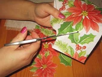 قص جميع الأجزاء التي تريدها من المناديل أو ورق الحائط أو المطبوعات أو المجلات المفضلة لديك. الخيار الأفضل هو قص التفاصيل بوضوح على طول المحيط بحيث لا توجد بقع بيضاء غير ضرورية. إذا كنت تعمل باستخدام المناديل ، فيجب عليك أولاً فصلها ، وترك الطبقة العليا فقط للعمل..