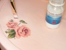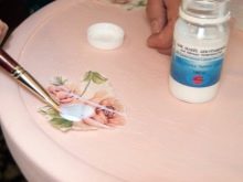 المهمة الأخيرة عند decoupage كرسي هي أن العمل يجب أن يبدو كليًا ومدروسًا جيدًا. يجب الجمع بين جميع التفاصيل والجرجير عضويًا مع بعضها البعض. عندما تكون راضيًا تمامًا عن النتيجة ولا تريد تغيير أي شيء ، انتقل إلى المرحلة النهائية – إصلاح النمط. هنا سوف تحتاج إلى فرشاة واسعة ورنيش واضح. قم بتنظيف جميع أنحاء الكرسي بالفرشاة واترك الطلاء يجف.