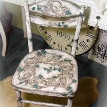 في الطراز الحديث ، يعد الكرسي العتيق بعيدًا قليلاً عن التكوين العام ، لذا يمكنك اختيار بعض الحلول الأسلوبية الأخرى. على سبيل المثال ، قم بتزيين سطح الأثاث بتطبيقات زاهية بألوان غنية. هنا لا يجب أن تغازل عملية الزخرفة وتستخدم الكثير من التفاصيل المختلفة وتشوش المساحة بالورود – اختر واحدة أو عدة لهجات مثيرة للاهتمام وضعها بحيث تزين سطح الكرسي.