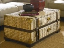 - منضدة قهوة. غالبًا ما توجد طاولة عثمانية في غرف المعيشة. بادئ ذي بدء ، إنها مريحة: مثل هذه الطاولة مضغوطة أكثر من طاولة القهوة العادية ، بدون زوايا حادة ، يمكنك وضع صينية بها شاي أو قهوة. يكمن التطبيق العملي في حقيقة أنه مستعد في أي لحظة لأن يصبح مقعدًا..