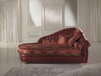 - نمط الإمبراطورية العثماني لديه فقط مسند ذراع واحد مرتفع منحني. للأثاث أرجل رفيعة ومقعد مستطيل ومسند ذراع خشبي منحوت. الاختلاف الأسلوبي هو التنجيد الأبيض ، وكذلك التذهيب للعناصر الخشبية. في الإصدار الحديث من طراز Empire ، يمكن أن تكون الأرجل من المعدن والجلد الأبيض ، بالإضافة إلى بقع ذهبية في الديكور.