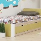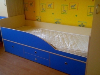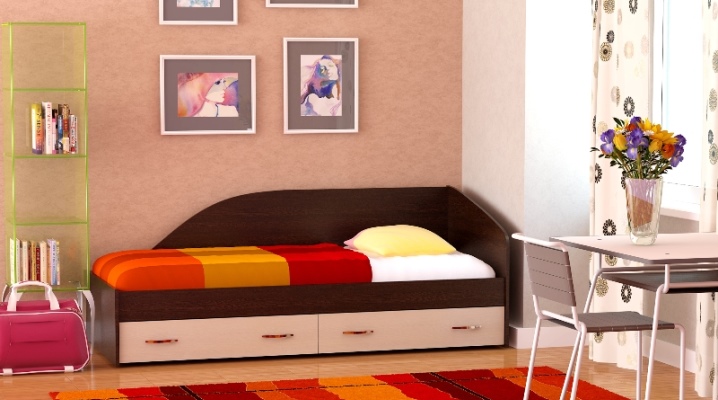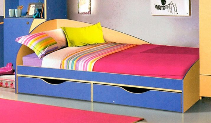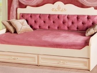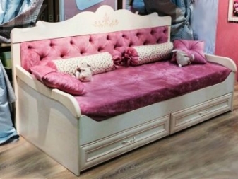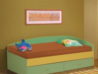 - سرير أريكة مع أدراج. هذا النموذج لا يمتد ، وبالتالي يحتوي على رصيف واحد فقط. يوجد أسفل المرتبة صناديق خاصة يمكنك من خلالها تخزين كل من الفراش والملابس والألعاب.