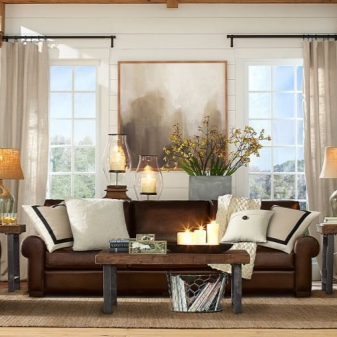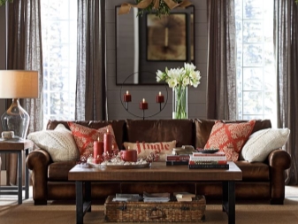 بالإضافة إلى كونها مكانًا للاسترخاء والتواصل الاجتماعي ، تميل الأريكة إلى أن تكون محور أي غرفة. بفضل حجمها الكبير ، يمكن للأريكة ، وخاصة الجلود ، أن تبرز عن بقية الأثاث ، بغض النظر عن اللون أو الطراز. في هذه الحالة ، يتطابق نظام الألوان لمثل هذا “الوحش” تمامًا ، فهو قادر على وضع حل نمط مثير للاهتمام للغرفة بأكملها.
