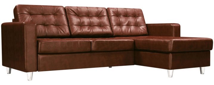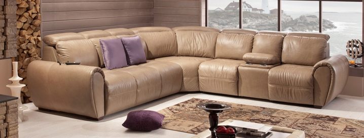 سيكون الخيار الأكثر أناقة ، بالطبع ، هو اختيار أريكة معيارية “ذكية” مصنوعة من الجلد. هذه موديلات فاخرة ذات تكلفة باهظة ، وعادة ما تكون مغطاة بجلد العجل مع خياطة “عربة” (مربعات كبيرة).