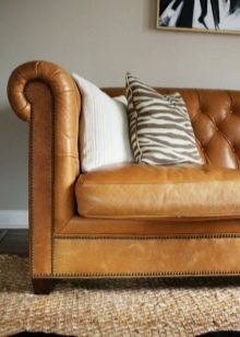 تنتقل الأصالة الجمالية للغطاء الجلدي إلى الأثاث ، بحيث تكون كل أريكة جلدية فريدة من نوعها. يمكن أن تزين غرفة معيشة عائلية وغرفة في شقة البكالوريوس. على أي حال ، فإن مثل هذا الأثاث المنجد سيكون له الانطباع الأكثر ملاءمة على الضيوف ، ويظهر مستوى الثروة وذوق المالكين..