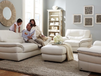 في أغلب الأحيان ، يتم شراء أريكة مغطاة بالجلد لغرفة المعيشة. في هذه الحالة ، يجدر التفكير في خيارات مثل: