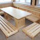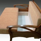 ستبدو الأريكة حديثة للغاية – إنها أريكة صغيرة ذات ظهر ومساند للذراعين بنفس الارتفاع. يمكن أن يكون إما منزلقًا أو لا ، لكنه نادرًا ما يستخدم في الأكواخ الصيفية ، حيث يعتقد الكثير من الناس أن المقعد صعب للغاية..