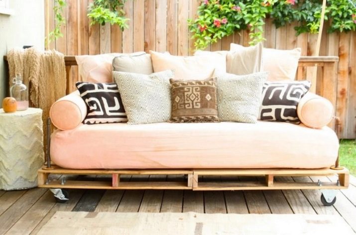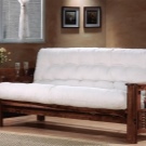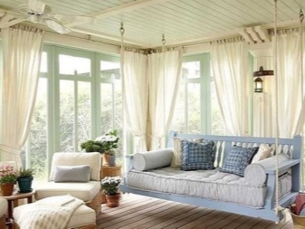 اختر الأرائك بشكل أفضل من إطار خشبي – فهي أكثر صداقة للبيئة ، والتي تتناسب بشكل أفضل مع مفهوم الإقامة الصيفية ، بالإضافة إلى أنها سهلة التجميع. لاحظ الإطارات المصنوعة من الرماد أو البلوط أو الصنوبر أو الجوز.