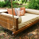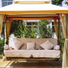 ذكر منفصل هو أرجوحة الأريكة. يمكن أن تكون مجرد أريكة معلقة أو مقعد ، أو خوص أو خشبي. ربما يكون هذا هو الخيار الأكثر رومانسية واسترخاء. يمكنك الجلوس عليها مع رفيقة روحك أو قضاء اليوم في الظل بصحبة كتاب جيد. التأرجح المهدئ في لحظة سيضعك في حالة من الاسترخاء والراحة. هذا النوع من الأريكة سهل التركيب ، وله آلية غير معقدة وبديهية نسبيًا ، وسهل التشغيل والتجميع ، ويشغل مساحة صغيرة وهو مريح للغاية. أيضًا ، تضفي هذه الأريكة جوًا من الراحة على داخل الفناء أو المنزل ، ولكنها للأسف لا تتناسب كسرير إضافي – فهي ضيقة بدرجة كافية ، وإذا لم يتم إصلاحها ، فإنها تتأرجح.