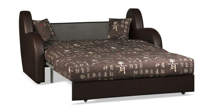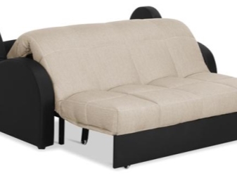 ميزة أخرى هي حقيقة أن الأريكة مصنوعة على إطار معدني. الحجم المطوي صغير ، لكن مساحة النوم كافية لشخصين. هذا مثالي لشقة صغيرة. يوجد عادة غطاء قابل للنزع يمكن إزالته وغسله في الغسالة.