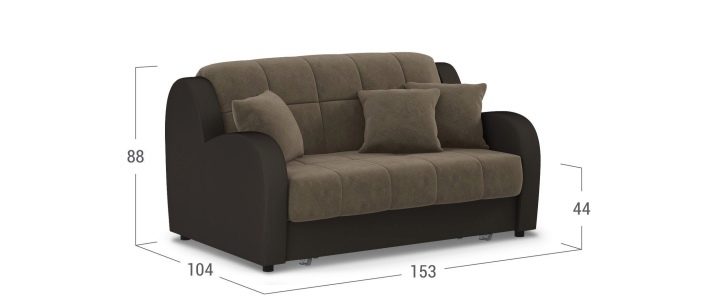 يستخدم المصنعون رغوة البولي يوريثان هالكون كمواد مالئة. الآلية قياسية – “أكورديون”. أبعاد الرصيف 200 × 198 سم ، في شكل مجمع: العرض – 226 سم ، العمق – 110 سم ، الارتفاع – 90 سم الإطار مصنوع من إطار معدني ودرع خشبي.