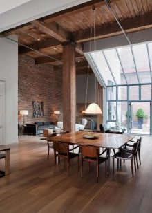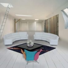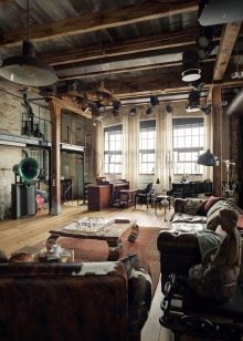 أيضًا في “الدور العلوي” يتم تشجيع وجود تفاصيل داخلية خشنة: عجلات أريكة من عربة مصنع قديمة ، مساند للذراعين على شكل صدر جدة ، إلخ. الميزة هي أي أثاث مصنوع من مواد الخردة. ستبدو الأرائك العلوية أفضل في شقق الاستوديو ، حيث أصبح من الأسهل من أي وقت مضى تقسيم المناطق بالأثاث..