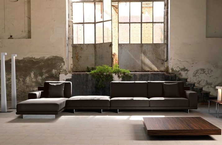 ستايل صناعي. سيقدر عشاق البنائية والبساطة الأرائك الجلدية المستطيلة أحادية اللون.