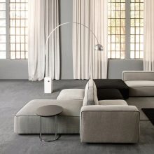ستتيح لك الأريكة المعيارية اللعب بمساحة. يمكنك إطالة ذلك في أي وقت عن طريق توصيل مقاطع فردية في المجموعة المرغوبة. على سبيل المثال ، يمكن تحويل أريكة نصف دائرية إلى أريكة مستطيلة ، وضعها بالحرف “P” ، ووضع عدد كبير من الضيوف حول الطاولة. تم تصميم الأرائك المصممة على طراز الدور العلوي للغرف الكبيرة والقاعات الفسيحة والمباني السكنية الصاخبة.