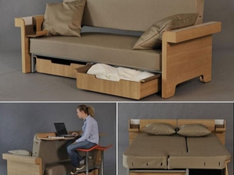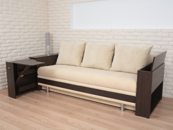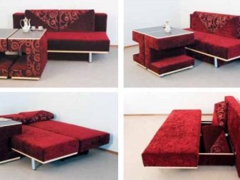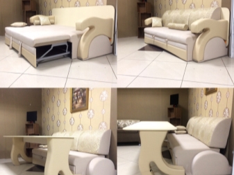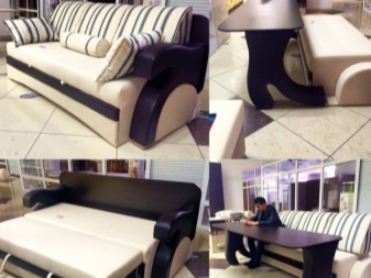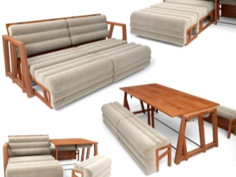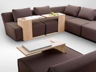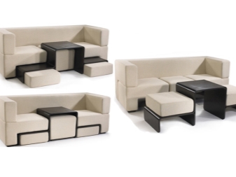 هناك نماذج أخرى مختلفة – على سبيل المثال ، عندما يكون سطح الطاولة “مختبئًا” في منافذ مختلفة أو يتشكل من مساند للذراعين. وهناك مثل هذه الخيارات عندما تختفي الأريكة تمامًا بعد التلاعب البسيط ، وتظهر طاولة قهوة كبيرة منفصلة في الغرفة. كل شيء يعتمد على قدرات وخيال الشركة المصنعة..