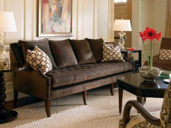 كما هو مذكور أعلاه ، فإن خصوصية اللون البني هي تنوعه. ستبدو الأرائك ذات درجات اللون البني المختلفة رائعة في التصميمات الداخلية المزينة بأنماط الباروك والروكوكو والإمبراطورية والقوطية. بالنسبة لأولئك الذين يفضلون الاتجاهات الحديثة (الحديثة ، آرت ديكو ، التكنولوجيا الفائقة وغيرها) ، فإن الأريكة البنية مناسبة أيضًا. كل هذا يتوقف على كيفية التغلب على الأثاث في الداخل ، مع الألوان والظلال التي يجب دمجها ، وما يجب إضافته.