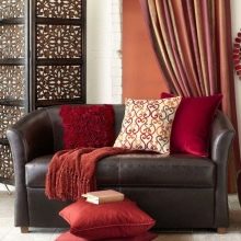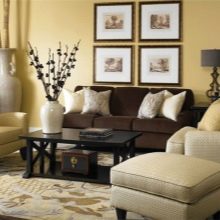 تعتبر الأريكة ذات اللون البني مثالية للديكور الداخلي للغرفة ، وهي مصنوعة من درجات اللون البيج والبني ، وكذلك بظلال حليبي. ينصح المصممون بالاهتمام بمجموعات مثل البني مع الفيروز أو الوردي الباستيل ، البني المحمر ، الأحمر الساطع أو الأخضر الغني ، البني والأصفر ، مع مزيج من الذهب وأشكال أخرى من ديكور الغرفة.