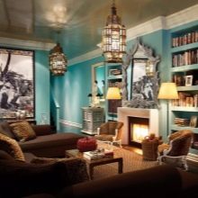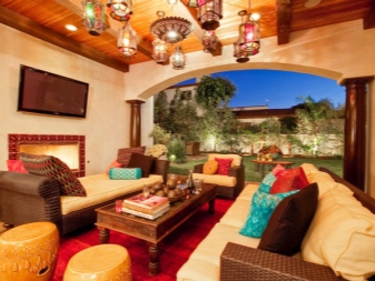 هذا الجزء الداخلي مناسب لأولئك الذين لا يستطيعون تخيل حياتهم بدون الشرق الغامض والغامض. يتميز الطراز المغربي باستخدام الأصفر والبرتقالي والأحمر والأزرق والأرجواني والوردي والبني وكذلك المغرة. الزخارف ، واللوحات الجدارية ، والفسيفساء ، والأقبية المقوسة ، والصناديق المصنوعة من الحديد المطاوع ، والوسائد الناعمة ، وسرير أريكة مع مظلة قماش شفافة – ستبدو غرفة المعيشة الخاصة بك كقطعة من الحكاية الخيالية “1001 Nights”.