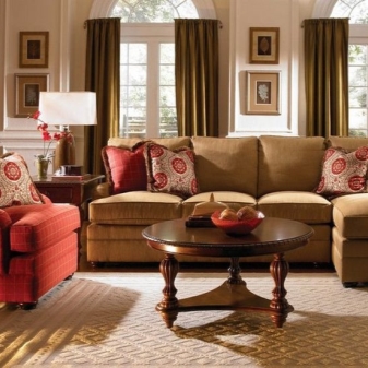 الطريقة الثانية الأكثر شيوعًا لتصميم الغرفة هي انسجام العناصر وتوافقها. لذا ، ما الذي يمكن وينبغي دمجه مع أريكة: