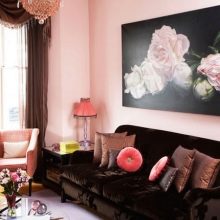 يتضمن خيار التصميم الداخلي هذا مزيجًا من درجات اللون البني الفاتح والداكن مع اللون الوردي الرقيق. سيضيف اللون الوردي الباستيل الهادئ الراحة والهدوء إلى الغرفة. سوف تشعر الطبيعة الرومانسية بالراحة في غرفة المعيشة هذه..
