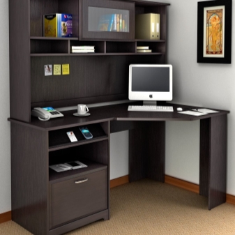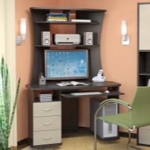 يتميز أثاث الركن بالعديد من المزايا مقارنة بالعناصر الداخلية الأخرى ، حيث يتيح لك استخدام المساحة الخالية مع الاستفادة. من خلال ملء زوايا الغرفة ، يمكنك توسيع المساحة بصريًا وتوفير الراحة النفسية للشخص. تحتوي طاولة الزاوية على سطح منضدة ، عند تثبيت الكمبيوتر المحمول ، لا يزال هناك الكثير من المساحة غير المشغولة. اختيار مثل هذا المنتج, سهولة الوصول إلى الرفوف والأدراج, التي توجد عليها العناصر المهمة.