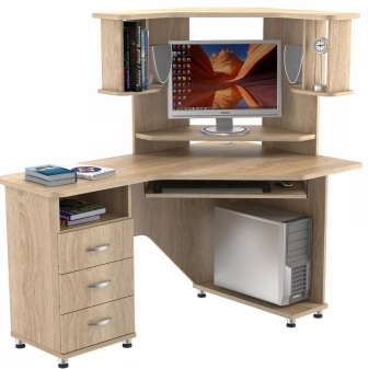 طاولة كمبيوتر زاوية مع رفوف: ميزات الاختيار