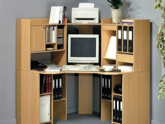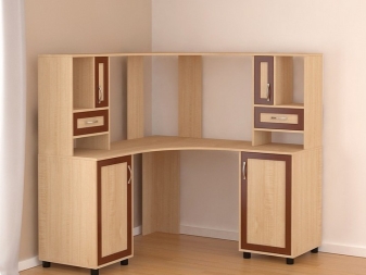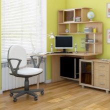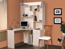 يتميز أثاث الركن بالعديد من المزايا مقارنة بالعناصر الداخلية الأخرى ، حيث يتيح لك استخدام المساحة الخالية مع الاستفادة. من خلال ملء زوايا الغرفة ، يمكنك توسيع المساحة بصريًا وتوفير الراحة النفسية للشخص. تحتوي طاولة الزاوية على سطح منضدة ، عند تثبيت الكمبيوتر المحمول ، لا يزال هناك الكثير من المساحة غير المشغولة. اختيار مثل هذا المنتج, سهولة الوصول إلى الرفوف والأدراج, التي توجد عليها العناصر المهمة.