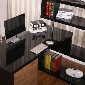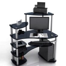 - تبدو المنتجات الزجاجية أصلية ومثيرة للإعجاب في منطقة العمل. بمساعدتهم ، يمكنك تكبير مساحة غرفة صغيرة بصريًا وجعلها متجددة الهواء من الداخل. يمكن للزجاج الخاص المقاوم للصدمات أن يتحمل الأحمال الثقيلة ، مما يسمح لك بتثبيت جميع المعدات المفقودة عليه. العيب الرئيسي لنماذج الزجاج هو السعر المرتفع..