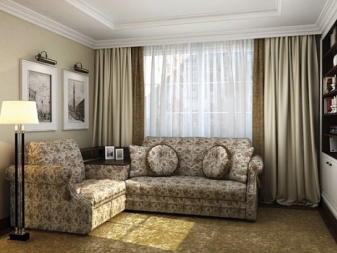 غالبًا ما يختار المشتري التنجيد البيج أو الرمادي للأريكة. حتى أريكة الزاوية الصارمة هذه يمكن تزيينها بإكسسوارات ملونة زاهية. إذا كنت ترغب في شراء أريكة بنمط ملون على المفروشات ، فعليك أن تتذكر أن هذا العنصر سيكون مركز الاهتمام في غرفة المعيشة. يجب ألا تأخذ بعض الأشياء الساطعة – ستصبح غرفة المعيشة سخيفة..