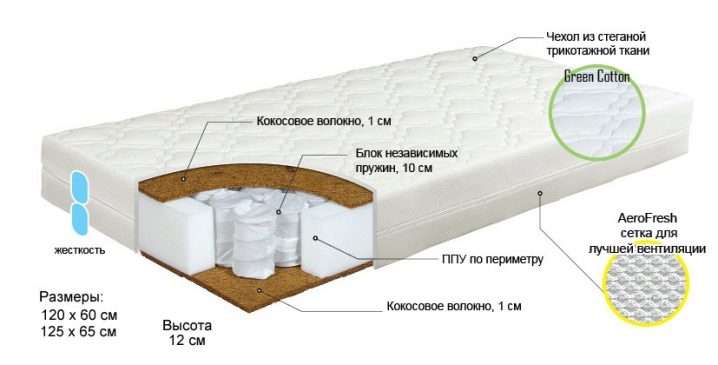 مراتب جوز الهند صلبة ، صلبة إلى حد ما ، ناعمة. كل نوع من المنتجات مناسب للأطفال من مختلف الأعمار والأوزان. إذا كان طفلك يعاني من مشاكل في العمود الفقري ، فتأكد من استشارة جراح العظام للعثور على النموذج المناسب.