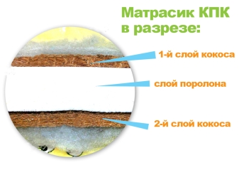 - تنفس. مرتبة ألياف جوز الهند تتخلل الهواء تمامًا ، ولا تتراكم الغبار والأوساخ. أيضا ، المادة لها خصائص تنظيم الحرارة. النوم على مثل هذه المرتبة في الحرارة مريح للغاية ، وفي الوقت البارد يكون الجو دافئًا. سيشعر الطفل بحالة جيدة في أي ظروف مناخية.