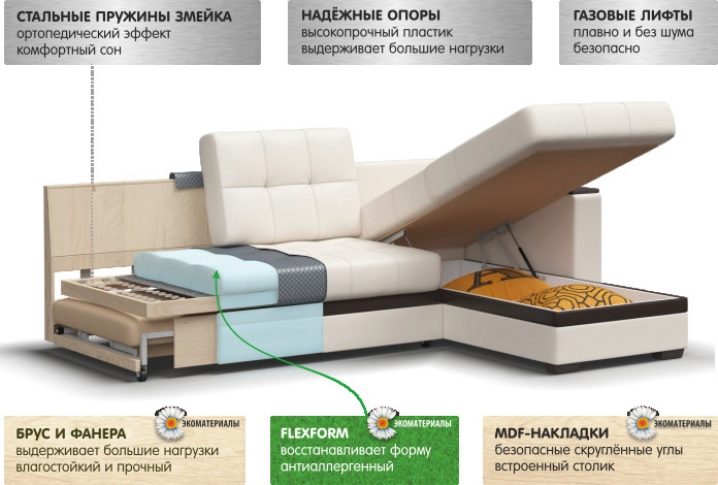 لاحظ المشترون أن أريكة الزاوية لا تسمح لك فقط باستخدام مساحة الغرفة اقتصاديًا ، ولكنها أيضًا مريحة جدًا وعملية. يتحول بسرعة ودون عناء إلى سرير مثير للإعجاب.