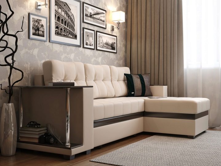 أرائك الزاوية جيدة جدا. إنهم يجعلون البيئة أكثر إثارة للاهتمام ، وبمساعدتهم يسهل تمييز منطقة الاستجمام. يتم شراؤها للمباني الفاخرة والشقق العادية بمساحات مختلفة..
