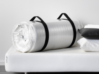 ربما لا يعرف الجميع الخيار التالي. هو – هي مرتبة ملفوفة في لفافة (بمعنى آخر ، في لفة ، في لفة). هذا المنتج مصنوع باستخدام مكبس خاص وآلة. في البداية ، يتم وضع المرتبة تحت الضغط. بعد الضغط ، يتم تعبئتها في كيس مفرغ من البولي إيثيلين. في النهاية ، تعمل آلة الدحرجة فوق المرتبة. لقد أحضرته إلى حالته النهائية قبل البيع.