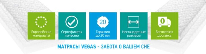 تقدم Vegas مراتب للمستهلكين من جميع الأعمار: نماذج ناعمة ولكن ثابتة للمسنين ، وأصعب على أطفال المدارس والشباب ، ومتوسطة الحجم للأطفال الصغار. ينتج المصنع مراتب لتقويم العظام بحشوات مختلفة: مع نوابض مستقلة ، ولوح لاتكس مترابط ، وطبقة من مادة MemoryFoam تم تطويرها في الأصل لرواد الفضاء ، بألياف جوز الهند الطبيعية.