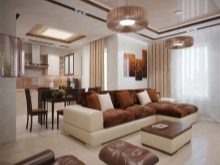 يجب أن تكون مواد التنجيد آمنة وصديقة للبيئة. من الأفضل شراء الخشب الطبيعي والمعادن والجلود. يجب عليك اختيار أريكة ذات نوابض في القاعدة ، والتي تتميز بالقوة المتزايدة ، والإطار من الخشب. إذا تم الجمع بين غرفة المعيشة والمطبخ ، فمن الأفضل شراء أثاث منجد بأغطية قابلة للإزالة. يمكن تنظيفها وغسلها في أي وقت. بالاختيار بين التصميمات القياسية على شكل حرف L والتصميمات الأخرى (على سبيل المثال ، البيضاوي والشكل U) ، من الأفضل إعطاء الأفضلية للأول ، لأن باقي الأشكال تشغل مساحة أكبر. إذا كانت الغرفة صغيرة ، فإن مثل هذه الإنشاءات سوف “تلتهم” الأمتار المربعة الثمينة.