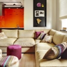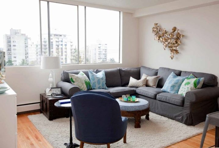 أيضًا ، يختار العديد من المشترين أريكة الزاوية طريقة جيدة لتقسيم المساحة عند إنشاء تصميم لشقة من غرفة واحدة. يمنح الغرفة إحساسًا بالانفتاح ويجعلها أكبر بصريًا. في الوقت نفسه ، تحظى كل من الأرائك التقليدية على شكل حرف L والنماذج القديمة بشعبية. في الغرف الصغيرة ، يمكن وضع هياكل الزاوية إما بالقرب من الحائط ، أو يمكنك ترك بعض المساحة للممر خلف مسند الظهر الجانبي.