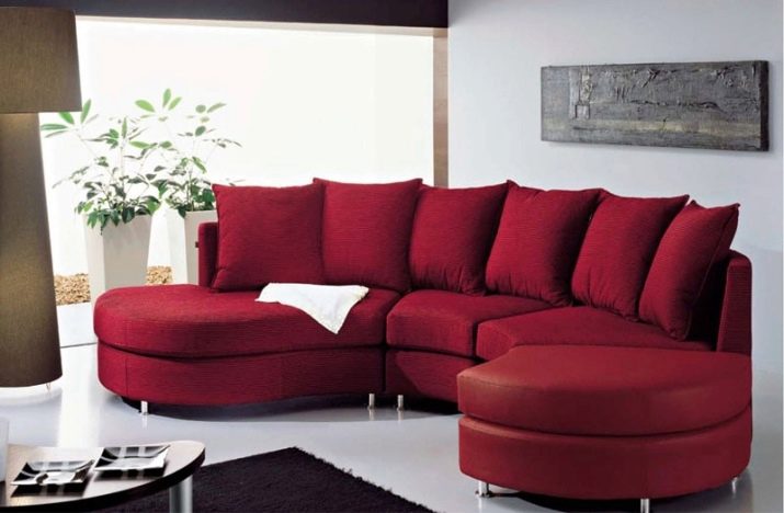 حداثة سوق الأثاث تبدو غير عادية وأنيقة – أرائك زاوية نصف قطرها مصنوعة على شكل نصف دائرة. هذه نماذج أنيقة وعصرية ، وغالبًا ما تكون مزينة في عرض تصميم حديث. عند إنشائها ، تهيمن مبادئ أنماط Loft و Hi-tech و Techno ، على الرغم من أنه يمكنك طلب حداثة مماثلة في الإصدار الكلاسيكي. تعتمد أبعاد هذه الهياكل على عدد الأجزاء المرتبة..