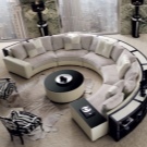 عند شراء نموذج نصف قطر ، يجدر بنا أن نتذكر أن تركيبه سيتطلب مساحة خالية أكبر قليلاً من الأريكة ذات الزاوية اليمنى الكلاسيكية.