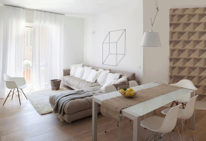 هناك أيضًا طرق لإنشاء خيارات مختلفة لتقسيم المساحة باستخدام أريكة الزاوية. يمكنك ترتيب ركن بأريكة على شكل حرف L ، والتي تقع على جانب واحد مقابل الحائط ، والآخر موضوعة في جميع أنحاء الغرفة ، مما يؤدي إلى إنشاء منطقة للضيوف. هذا حل جيد لتلك الشقق التي لا يوجد بها مدخل ، ويفتح الباب الأمامي مباشرة في غرفة المعيشة. في هذه الحالة ، يمر الضيوف القادمون عبر ممر وهمي خلف ظهر الأريكة ويدورون حولها لدخول منطقة الضيف..