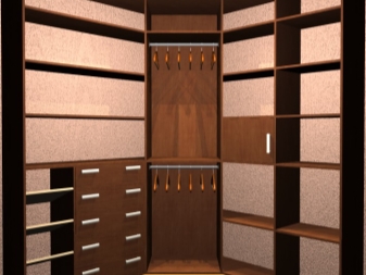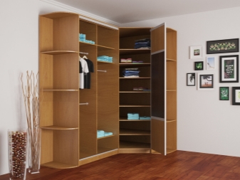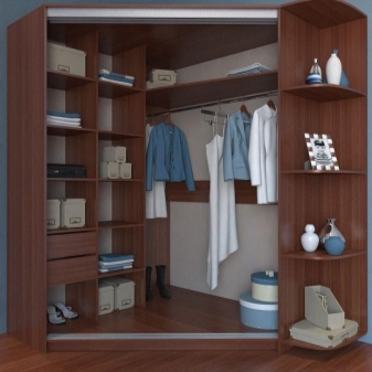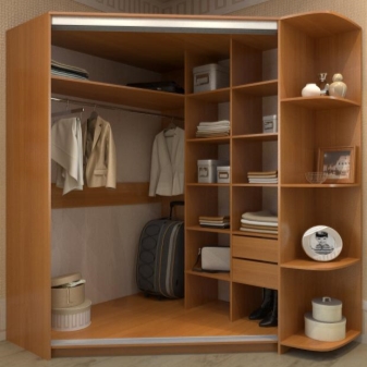 الآن دعونا نلقي نظرة على أمثلة محددة للهيكل الداخلي لخزانة الزاوية لأنواع معينة من الغرف..