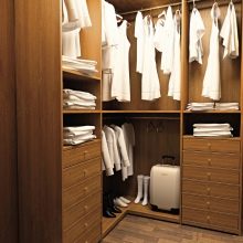 - الطبقة الوسطى – المساحة الأكثر راحة وسهولة الوصول إليها والأكبر في الخزانة بأكملها. توجد صناديق وسلال ، والكثير من الأرفف ، وغالبًا ما يوجد شريط به علاقات. من الأفضل هنا وضع العناصر الأكثر طلبًا في الحياة اليومية. على سبيل المثال ، الملابس غير الرسمية.