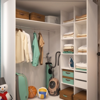 إذا كانت خزانة الزاوية الخاصة بك تحتوي على مقصورات طويلة بدون أرفف متقاطعة ، فاحفظها لتخزين المعدات الرياضية. على سبيل المثال ، زلاجات جبال الألب أو أعمدة الرحلات أو الملحقات – المظلات وعصي المشي وما إلى ذلك. الأدراج الصغيرة رائعة لتخزين القبعات والأوشحة والقفازات. ينطبق هذا على المواقف التي لا توجد فيها علاقات خاصة في الردهة للأشياء المدرجة..