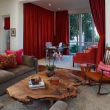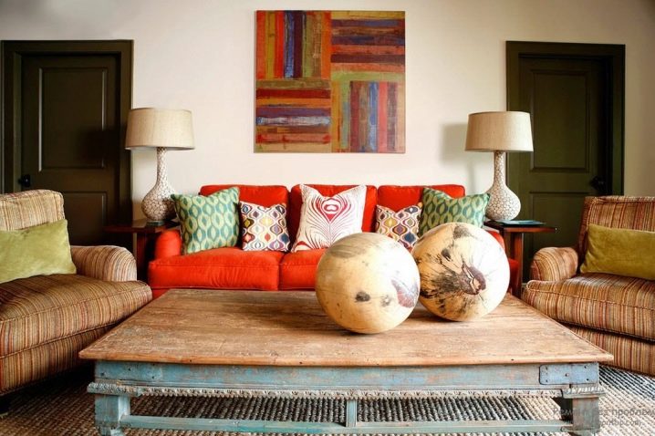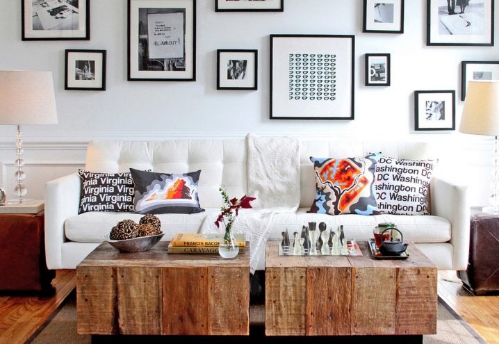 غالبًا ما يستخدم المصممون تقنية الاقتران ، والتي تعطي أحيانًا نتائج إيجابية بشكل غير متوقع. لذلك اختاروا المصابيح والمزهريات والسجاد وطاولات القهوة. يجب أن تكون هذه العناصر متطابقة تمامًا. يساهم هذا النهج في إنشاء تصميم داخلي أصلي وراحة وتغيير سريع للمشهد: يمكنك تحريكها معًا وتشكيل سطح كبير ، على سبيل المثال ، عند استقبال عدد كبير من الضيوف. قد تحتوي الغرف الكبيرة جدًا على طاولات متطابقة أكثر.