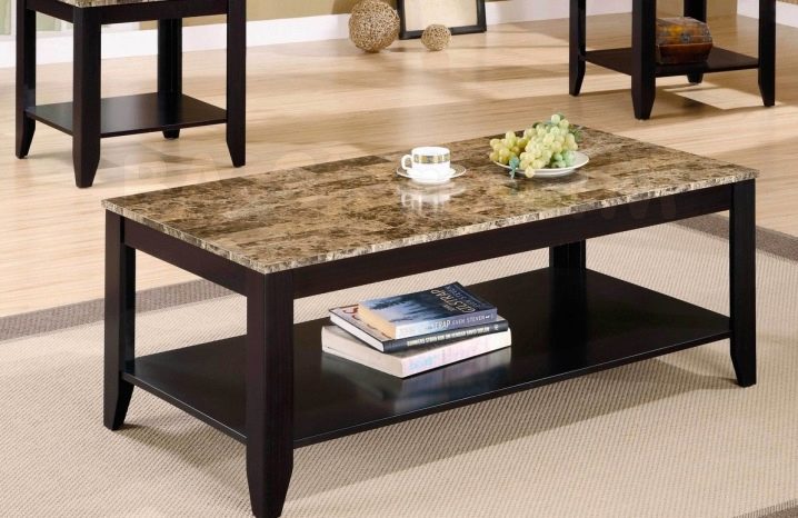 سطح الطاولة والقاعدة مصنوعان من مجموعة متنوعة من المواد. المنتجات باهظة الثمن مصنوعة من الخشب الطبيعي الصلب وحتى الأحجار شبه الكريمة. هناك المزيد من منتجات الميزانية لتصنيع البلاستيك ، اللوح ، MDF ، القشرة ، الزجاج ، المعدن. تتكون الجداول من نوع واحد من المواد ، وتجمع النماذج المدمجة بين نوعين مختلفين أو أكثر. نسخة متينة للغاية من طاولة القهوة مصنوعة من مواد طبيعية – خشب مع ديكور حجري. بالطبع ، هذا نموذج باهظ الثمن ، لكنه يتناسب تمامًا مع التصميم الداخلي الكلاسيكي ، والأسلوب الريفي ، وكذلك الطراز القديم.
