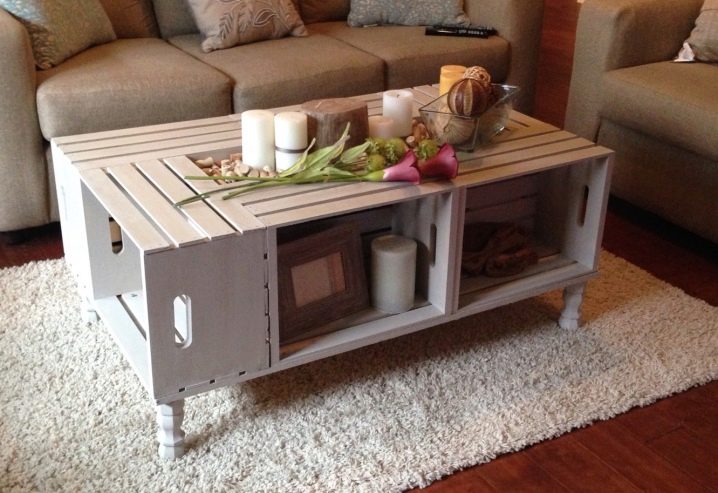 يمكن استخدام الصناديق الخشبية البسيطة لطاولة مثل المُنشئ. يمكن استخدام ستة أدراج لصنع طاولة قهوة عملية جيدة تحتوي على كتب وألبومات وأقراص. تحتاج فقط إلى تطبيق طبقة من الطلاء عالي الجودة ، والتي ستحول الصناديق القديمة إلى ما هو أبعد من التعرف عليها..