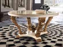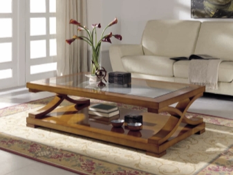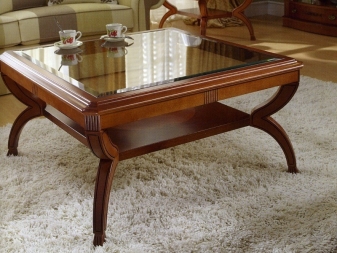 وفقًا لذلك ، تتناسب طاولة القهوة مع الديكور. ستتناسب الأصناف الداكنة من الخشب النبيل والأرجل المصقولة والمنحوتة ذات الأنماط الغريبة تمامًا مع التصميم الداخلي الكلاسيكي للغرفة. بدلاً من ذلك ، يمكن أن تكون طاولة على أرجل منحنية مذهبة ، مع سطح زجاجي ومحاط بعناصر ديكور معدنية لامعة..